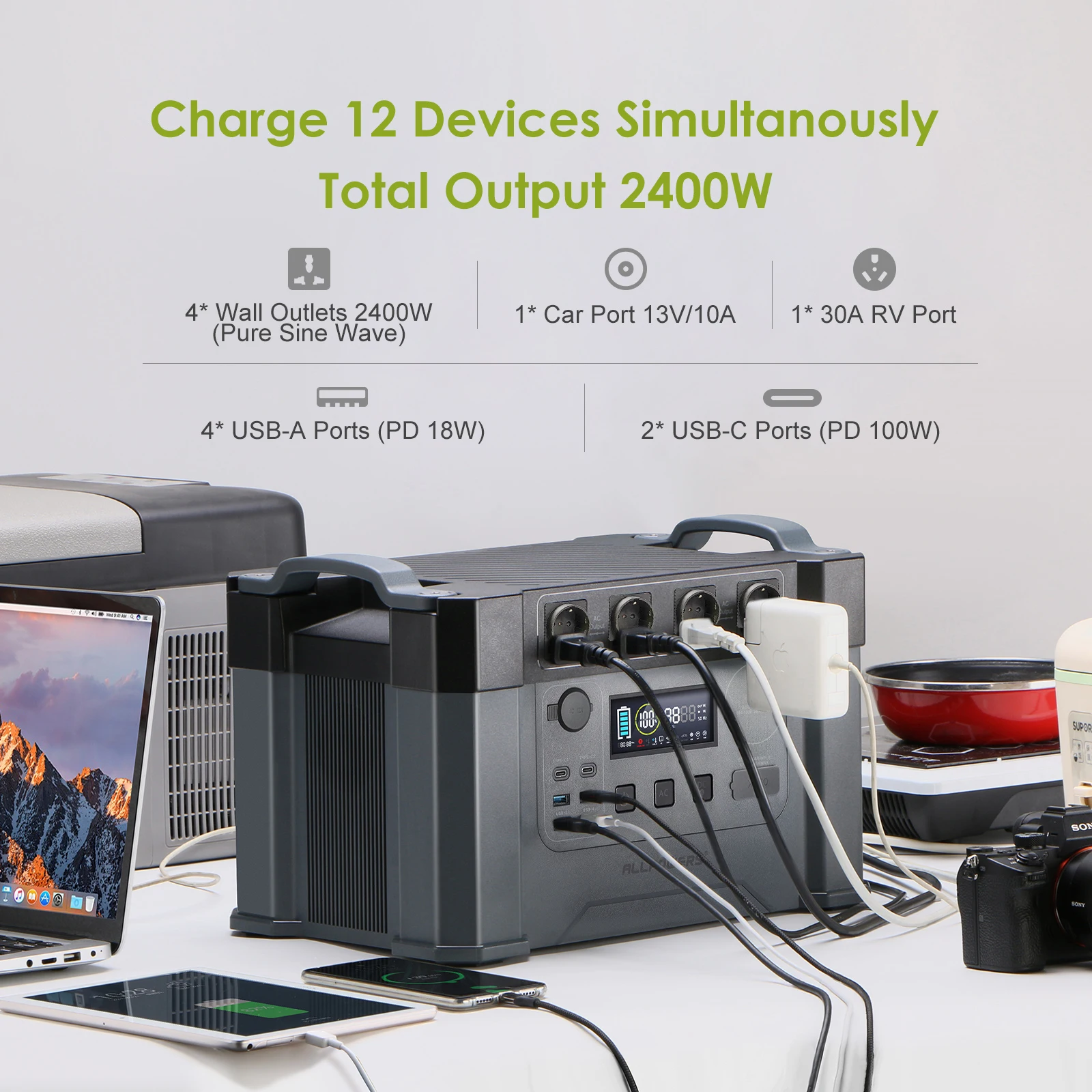 ALLPOWERS Solar Generator Kit- 1451.5Wh- 2400W Inverter- 110V/230V Pure Sine Wave AC Outlet- 2×100W Portable Solar Panels